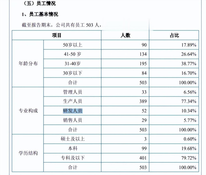 需要指出的是,公司研发人员数量存在出入,申报稿中2024年为50人,占比10.62%,而上会稿中称最近一年为46人,占比10.19%,另外上会稿员工基本情况中研发人员52人,占比10.34%,究竟该以哪个数据为准?
