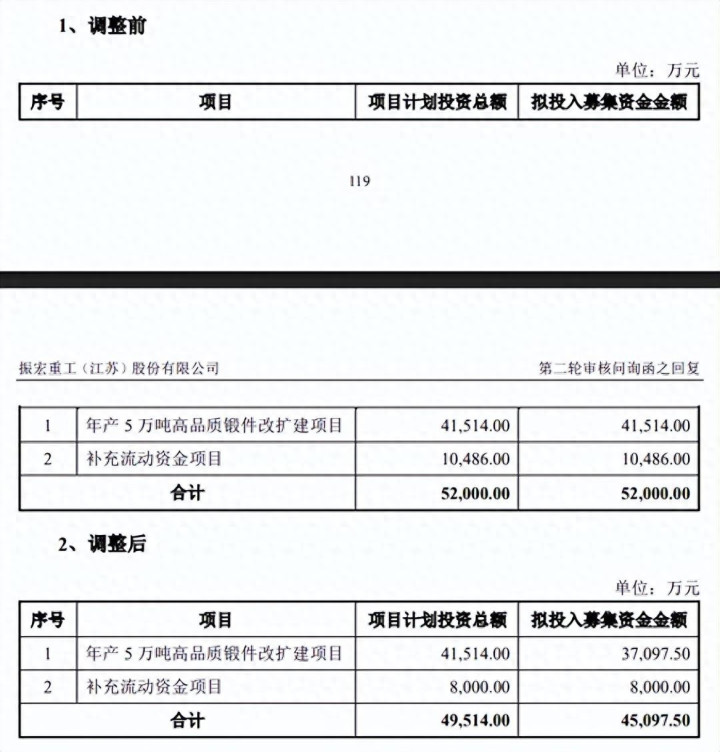 据短平快解读了解,扩建项目中含4,416.50万元铺底流动资金,这也引起北交所关注,第二轮问询中要求公司说明铺底流动资金是否实质为补充流动资金,随后第二届董事会第六次会议审议通过,公司取消以募集资金投入“年产5万吨高品质锻件改扩建项目”相关的铺底流动资金。