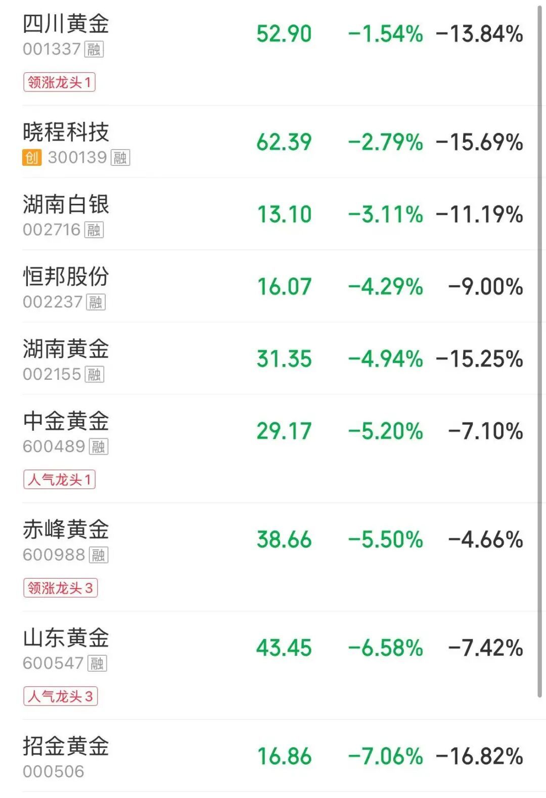 贵金属板块下挫,山金国际、西部黄金跌超7%。