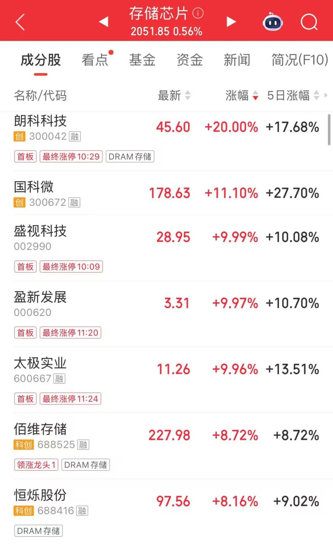 存储芯片板块再度大涨,朗科科技、太极实业等涨停,佰维存储涨超8%创新高。